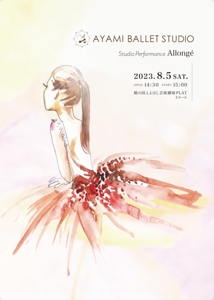 「Studio Performance Allongé」はジュニアバレエ中級クラス以上の生徒と、大人クラスの有志の方々が出演する舞台です。一昨年は「おさらい会」という名前で舞台を行いましたが、普段のレッスンのおさらいではなく、個々が挑戦し成長できる場を作りたいという思いから、フランス語で『伸ばす』を意味する「Allongé(アロンジェ)」という名前を冠しました。