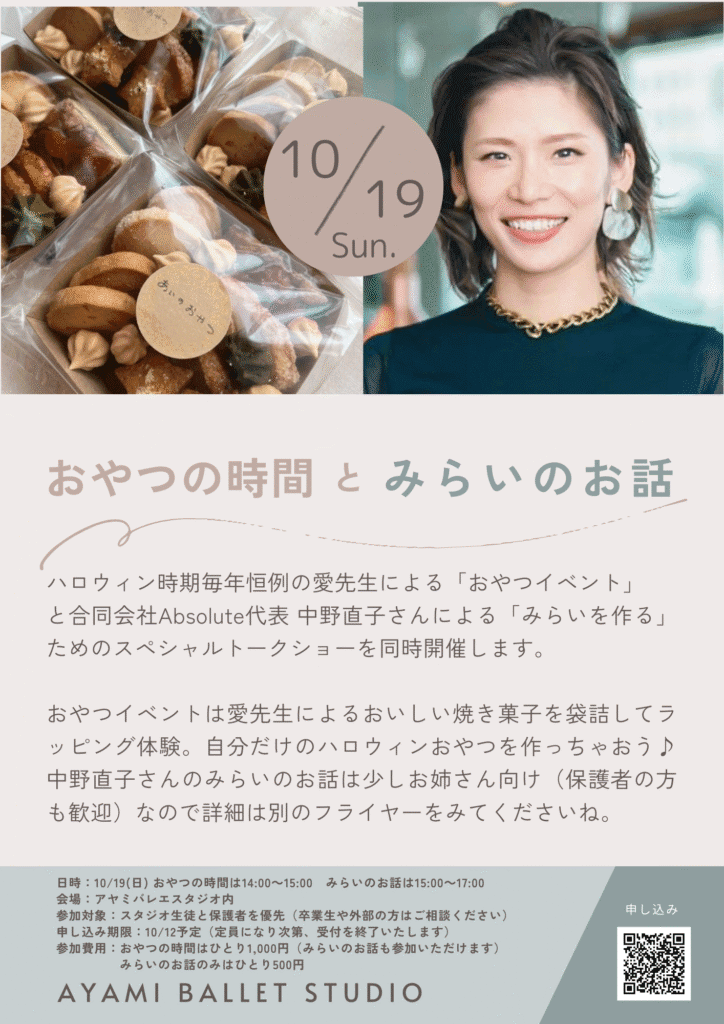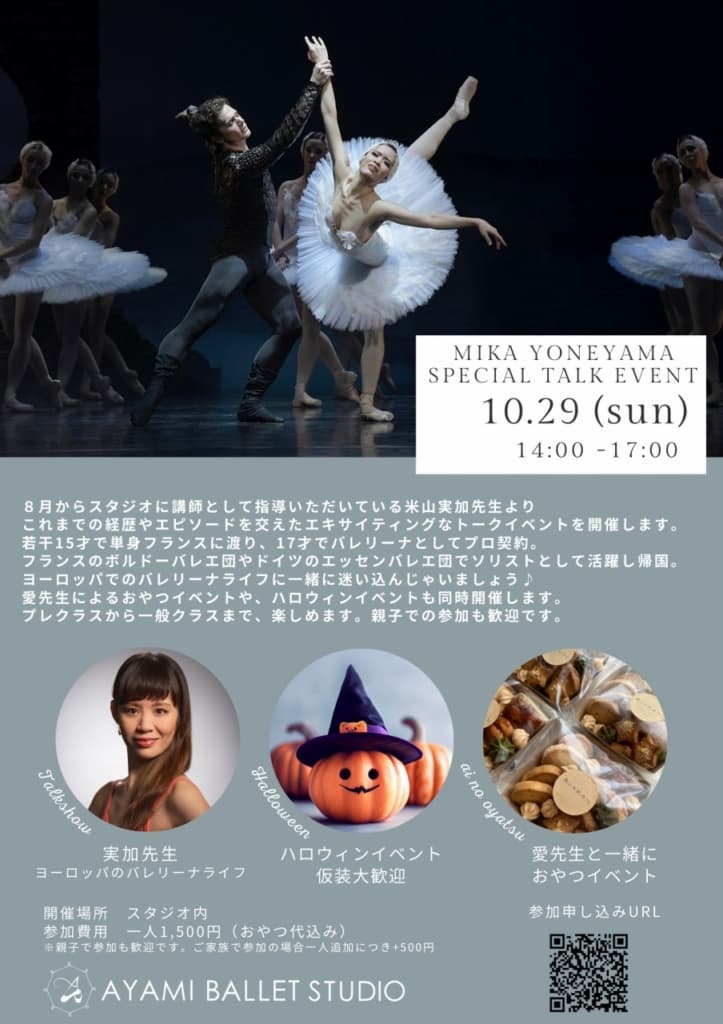 深まる秋に、実加先生のような世界で活躍している方からバレエがどんな芸術なのか話していただき、バレエにさらに興味をもってもらえたらいいなぁと願ってます✨